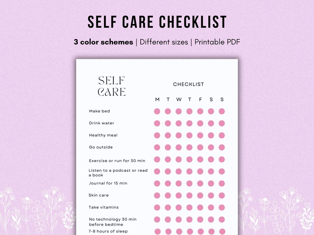 This digital product is for a Self Care Checklist, Printable Digital PDF Wellness Planner, Self Care To do List.